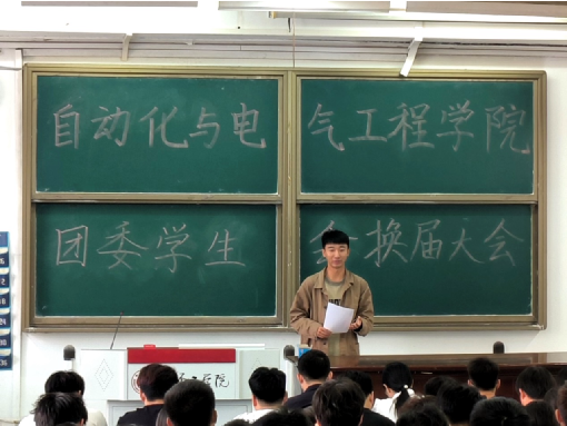 临近结束,周原老师为上一届主席、团委副书记颁发聘书;主席团成员为各部门上一任部长颁发聘书。聘书颁发仪式结束后,全体成员起立奏唱国歌,会议在嘹亮的国歌声中圆满结束。