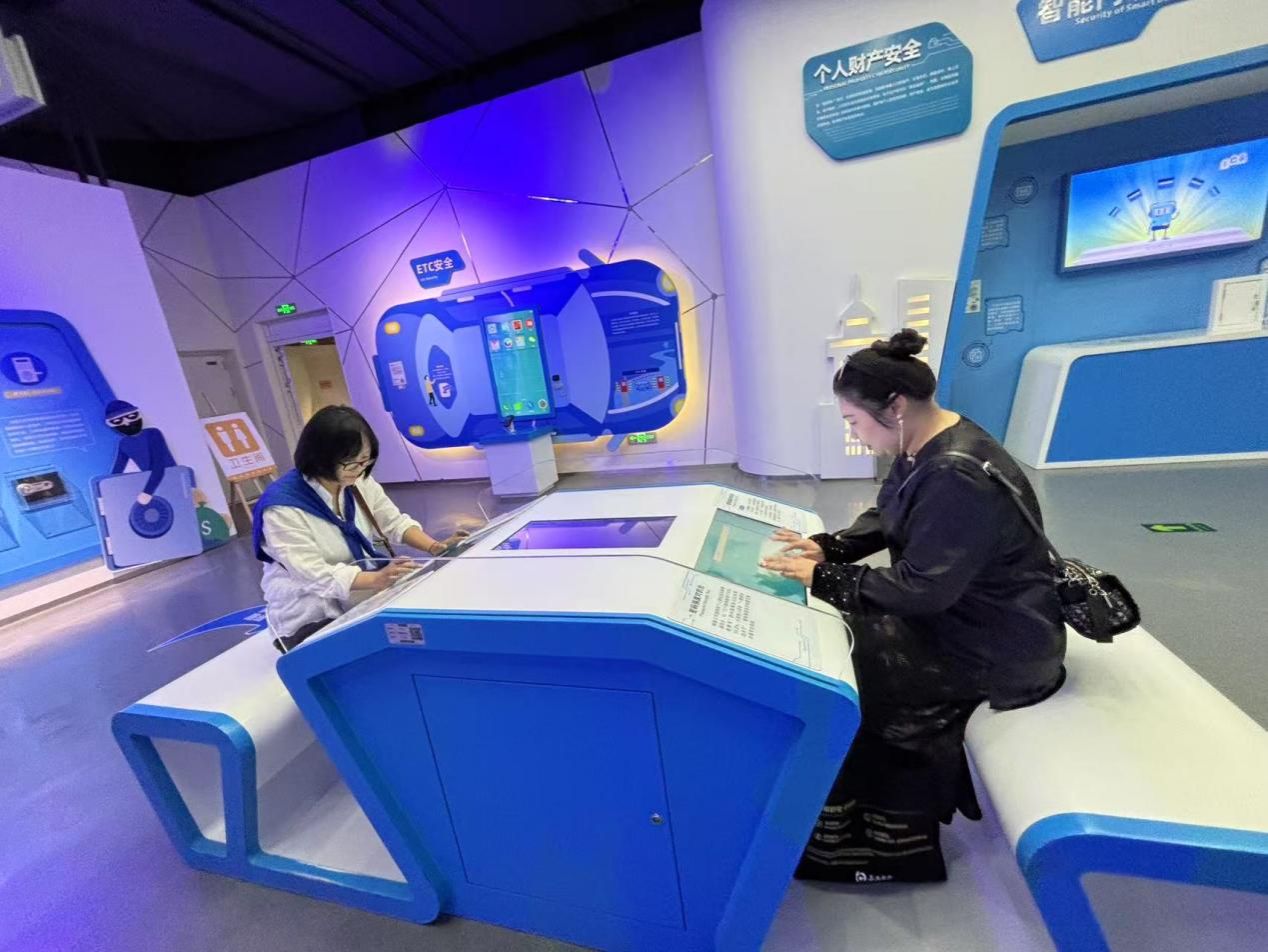 教师党员们依次参观了“网络安全空间”、“安全生活”、“安全社会”、“安全中国”等主题展区。活动现场,丰富的互动体验项目让老师们收获满满。在密码对抗环节,党员教师分组进行虚拟密码系统破解演练,深化密码学原理认知与攻防策略;通过手机号码篡改模拟设备,直观感受到不法分子如何利用技术手段篡改来电号码,实施电信诈骗,深刻认识到信息安全防护的重要性;"幸运抽奖"项目暗藏玄机,实则是对网络钓鱼诈骗的模拟,老师们在体验中识破抽奖链接暗藏的恶意程序,掌握反诈技巧;此外,借助VR设备体验黑客攻击场景,切身感受到网络攻击对关键信息基础设施的严重威胁。参观过程中,教师们结合专业背景展开研讨,认识到网络安全对国家安全各领域的重要影响。