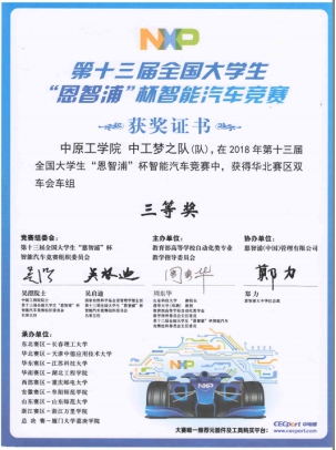 2018年度全国老员工“恩智浦”杯智能汽车竞赛华北赛区二等奖1项、三等奖1项。