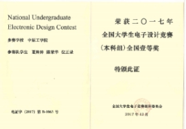 2017年度全国电子设计大赛国家一等奖2项、二等奖6项;省级一等奖16项、省级二等奖9项、省级三等奖15项。