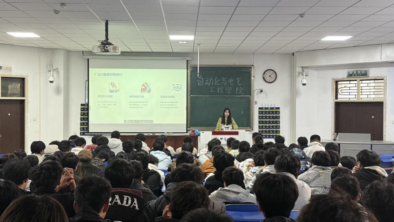 大会内容设计紧密贴合新生实际需求,将心理健康教育融入日常生活的具体场景。辅导员丁晴老师首先从“行为举止与自我形象”入手,阐述了文明礼仪不仅是个人素养的体现,更是营造和谐人际关系、减少人际摩擦、从而降低心理内耗的重要途径。随后,会议深入探讨了“兴趣爱好的心理滋养价值”,引导同学们认识到,在课业之余培养积极健康的兴趣爱好,是调节情绪、释放压力、获得成就感和归属感的有效方式,是维持心理平衡的重要支撑。会议还结合常见适应性问题,分享了时间管理、有效沟通及寻求支持的具体方法与资源。