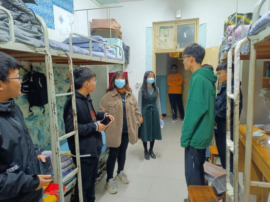 金秋十月,终于迎来了2021级新生。为更好了解他们的学习、生活情况,10月17日晚,电子信息公司党委副书记王媛媛,员工工作办公室主任魏晓宇,2021级辅导员张芳及部分新生负责人一同走访2021级新生寝室。